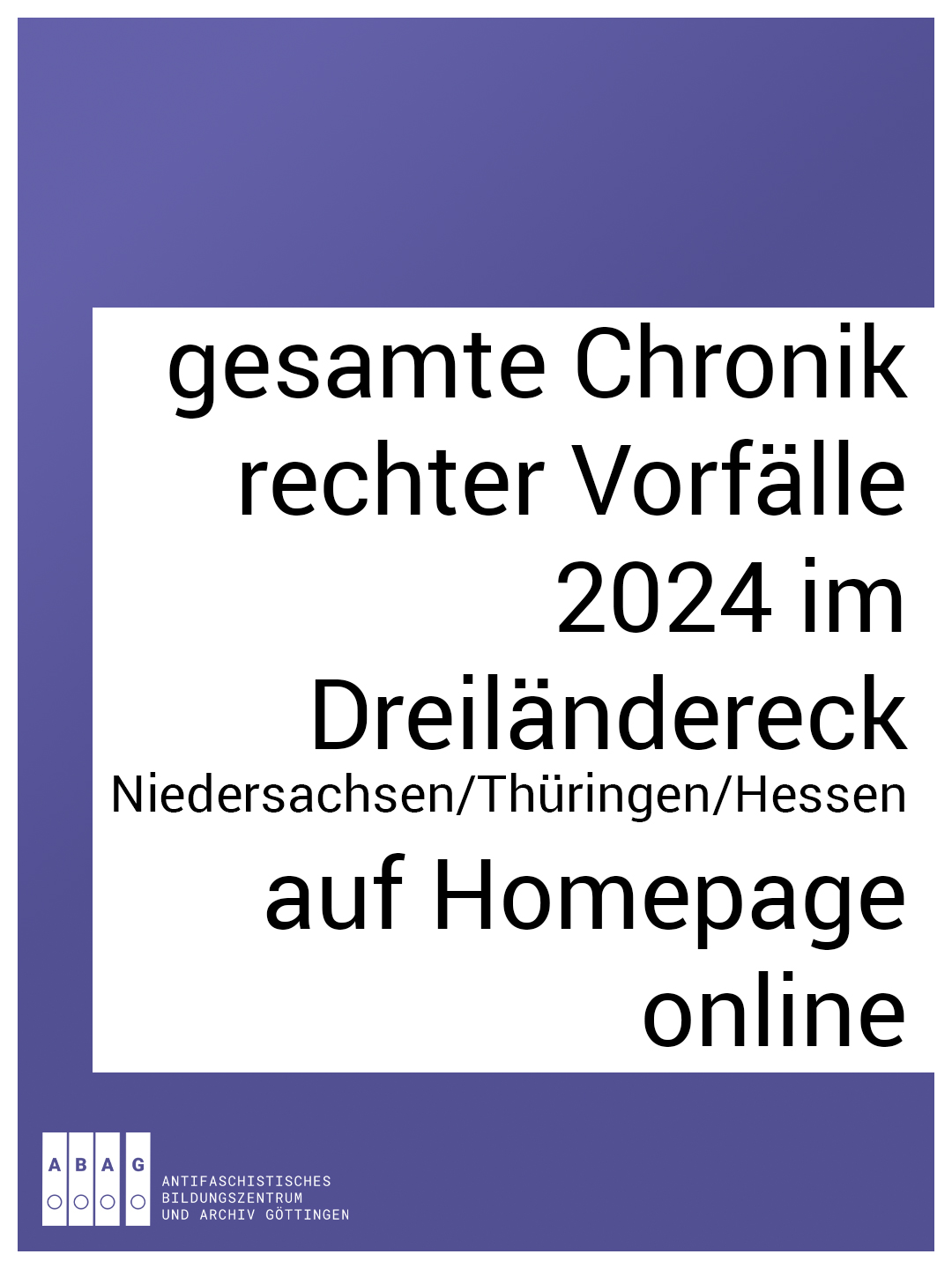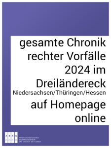 Unsere gesamte Chronik (extrem) rechter Vorfälle im Dreiländereck Niedersachsen / Thüringen / Hessen für das Jahr 2024 ist nun auf der Homepage aufrufbar: